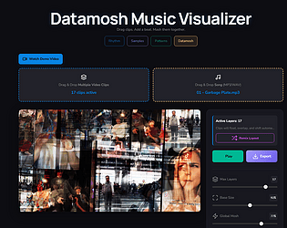 Datamosh-style music visualizer for creating chaotic, audio-reactive video collages.